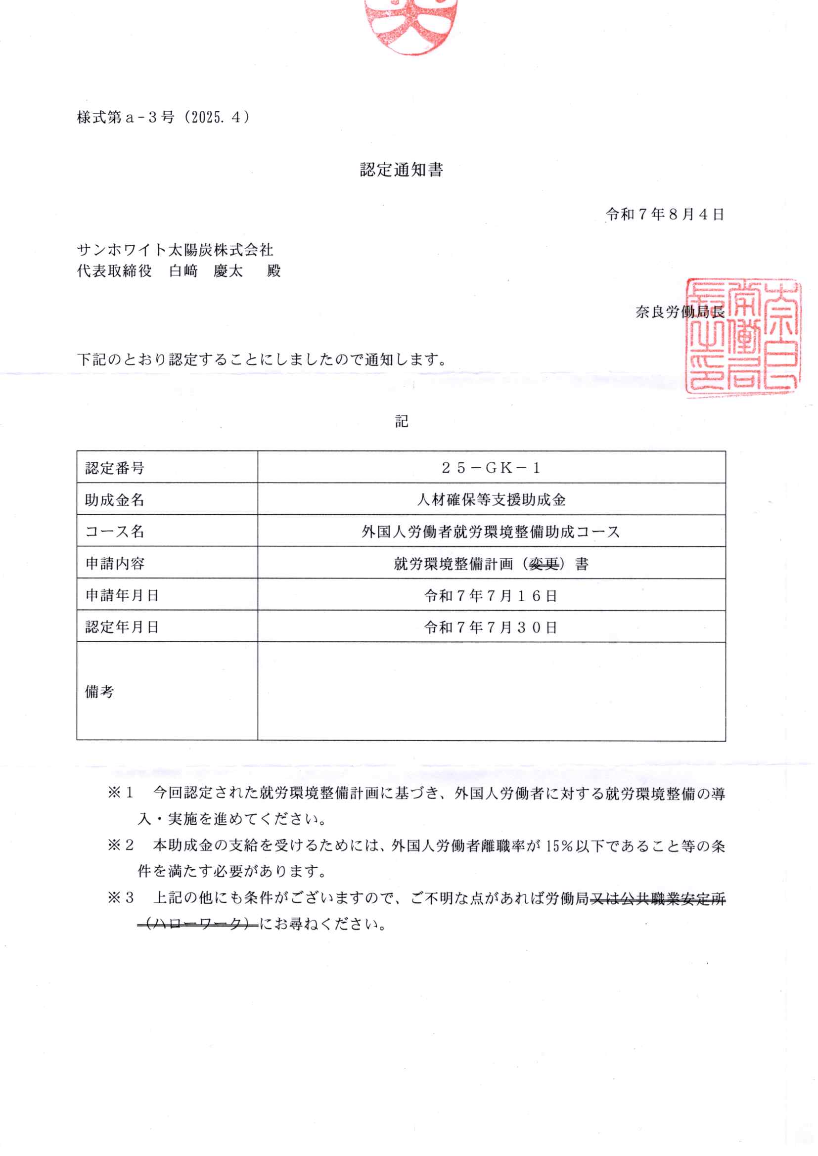 この度、「登録支援機関」を法務省より、「有料職業紹介事業」を厚生労働省より、認証を頂くことが出来ました。